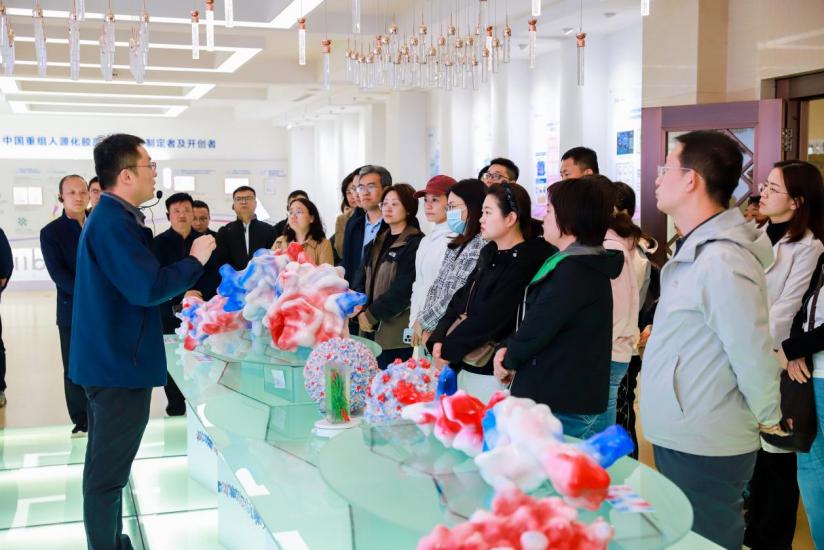 来自各医院的分管院长,器械科、美容整形科、皮肤科、妇产科等相关科室负责人,实地参观了锦波生物科技成果展厅,详细了解重组人源化胶原蛋白、抗HPV生物蛋白等核心产品的研发历程、技术优势与应用场景。