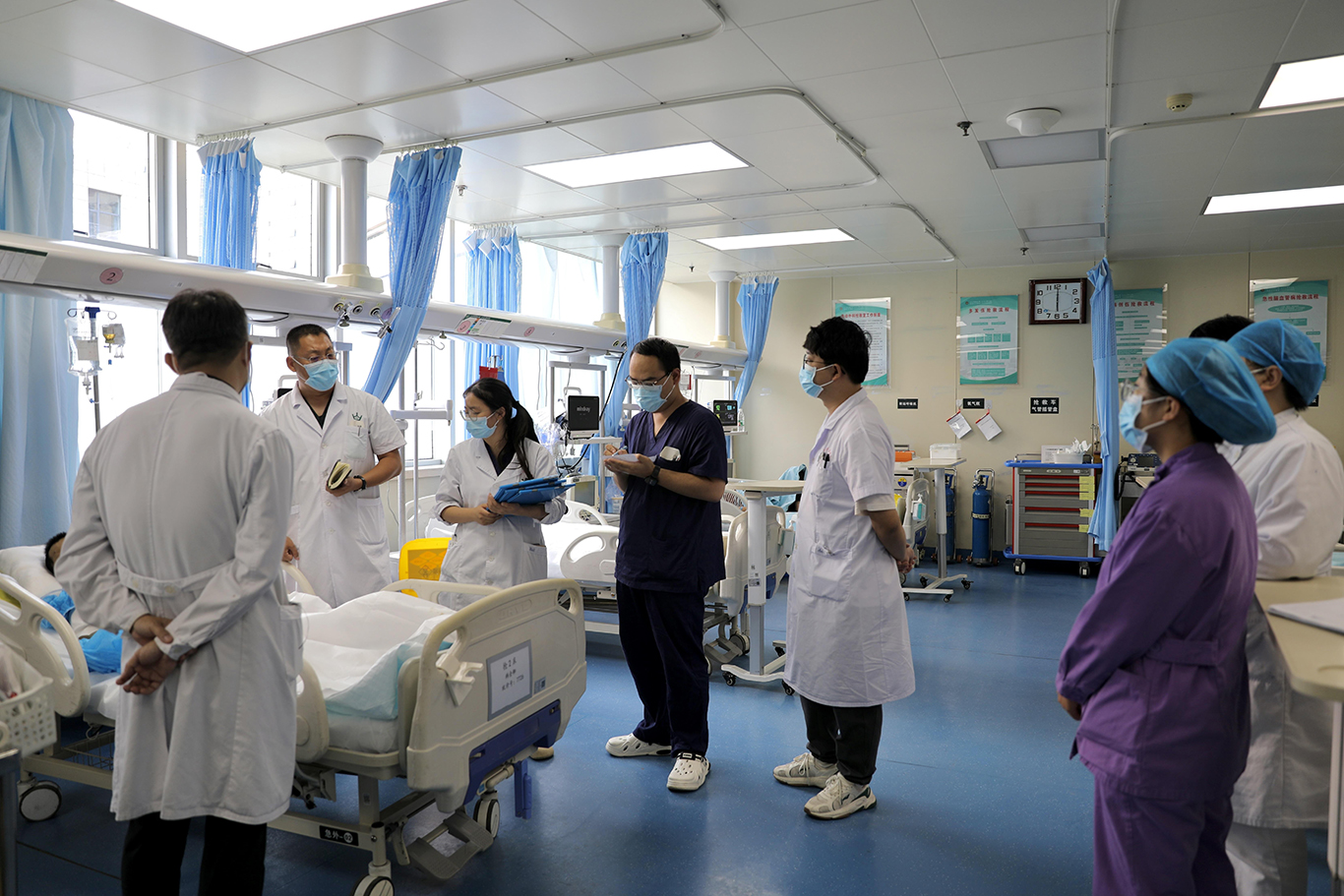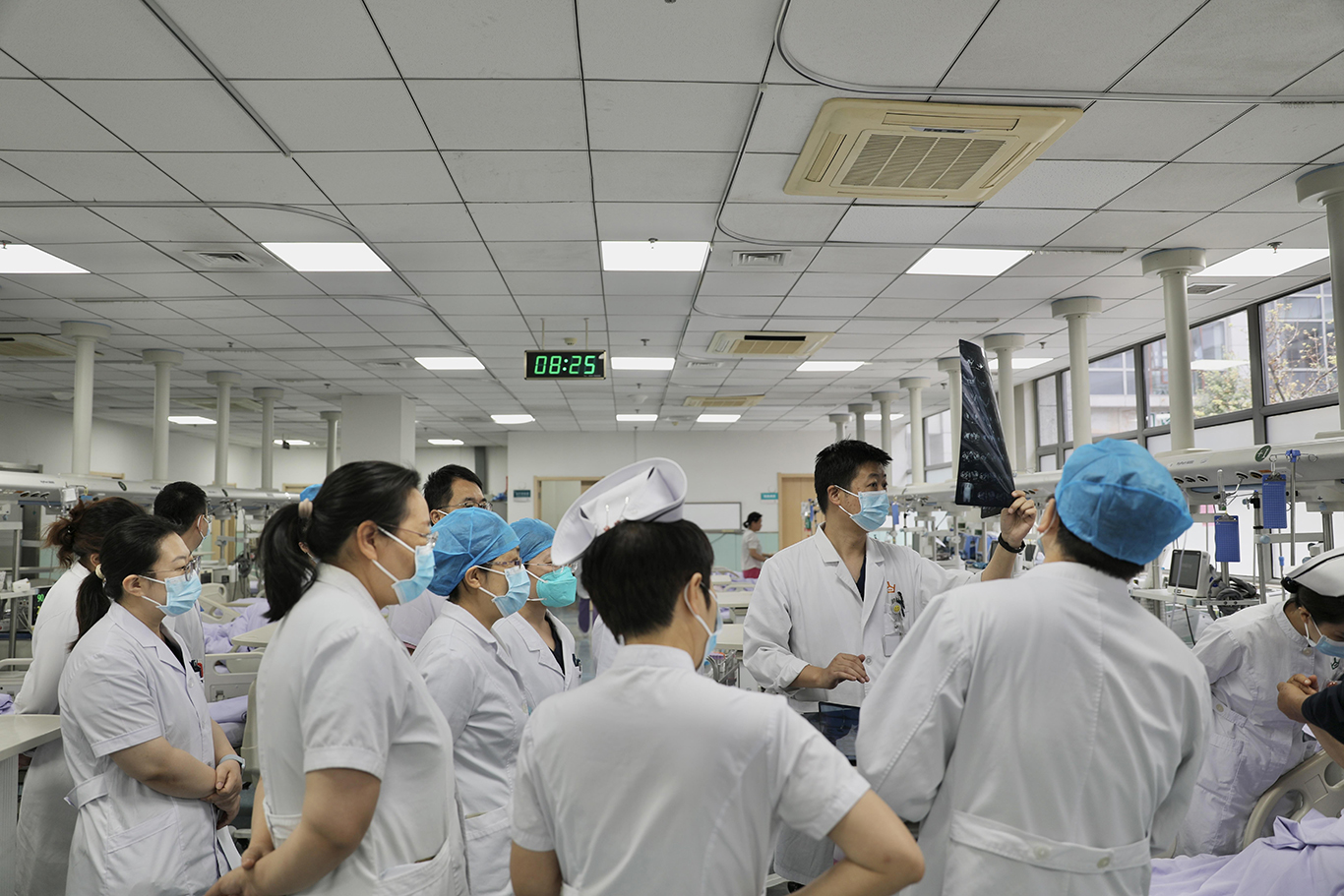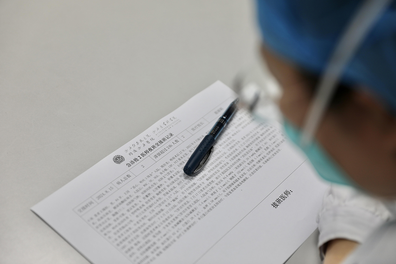 交接完基本情况,两班医生会来到急诊抢救室病房里,对病人的各项数据进一步确认和讨论,完成昼夜之间的最终交接。