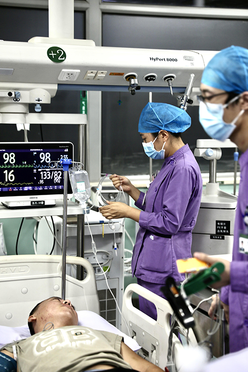 晚上10点,护士第一时间为进入到急诊抢救室的病人建立静脉通路。