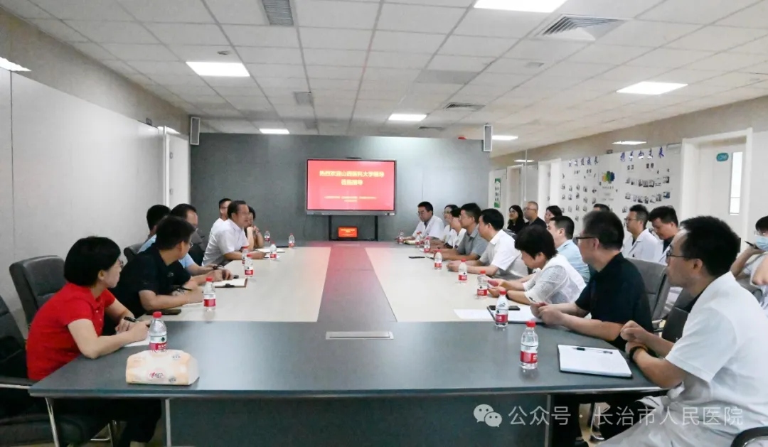 座谈会上,胡文庆对刘春一行的到来表示热烈的欢迎。他表示,长治市人民医院与山西医科大学之间有着深厚的历史渊源,承担着该校部分人才培养任务,期待双方能在科研教学合作上取得新的突破。王晚萍介绍了医院历史文化、学科建设、发展现状及下一步规划。