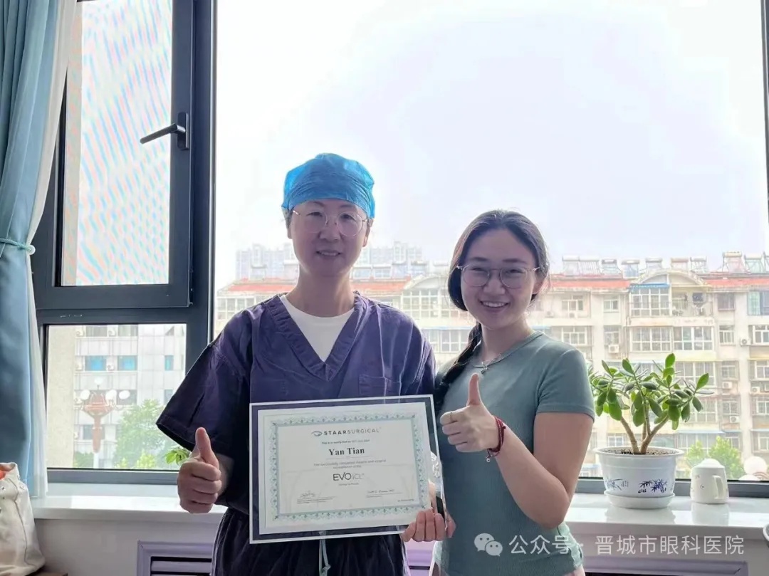 田妍大夫荣获“全球EVO ICL认证医师”资格,标志着晋城市眼科医院在近视加法手术上再添实力。
