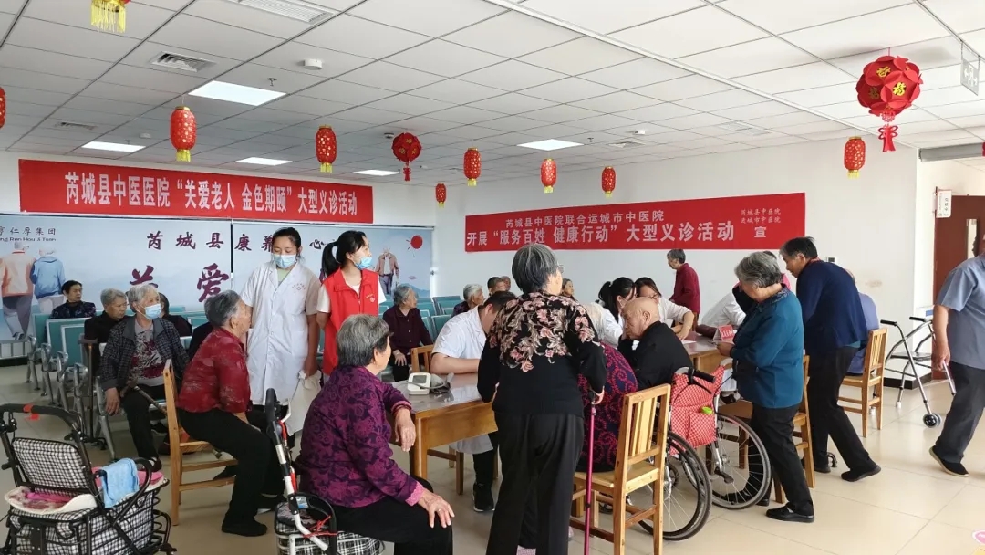 活动期间,芮城县中医医院和运城市中医院的专家团队为老人们进行量血压、针灸、按摩等免费义诊服务。专家们用心诊疗,耐心回答老人们的健康咨询,并根据他们的具体情况提供专业的健康建议。