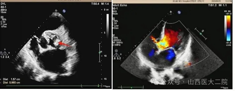 患者为一名中年男性,20余年前在当地医院体检发现心脏杂音,但未进一步诊治。2024年3月初开始间断出现寒颤、发热、胸闷、气短,体温高达38.5℃,伴咳嗽、咳白色痰液,不能平卧休息,伴双下肢水肿、食欲不振,就诊于山西医科大学第二医院心血管内科。