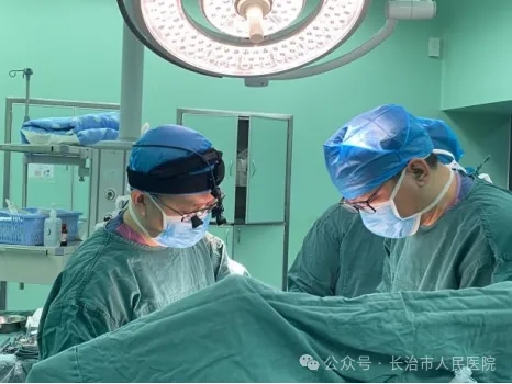 ▲北京安贞医院李平教授和长治市人民医院心脏外科团队施行微创手术