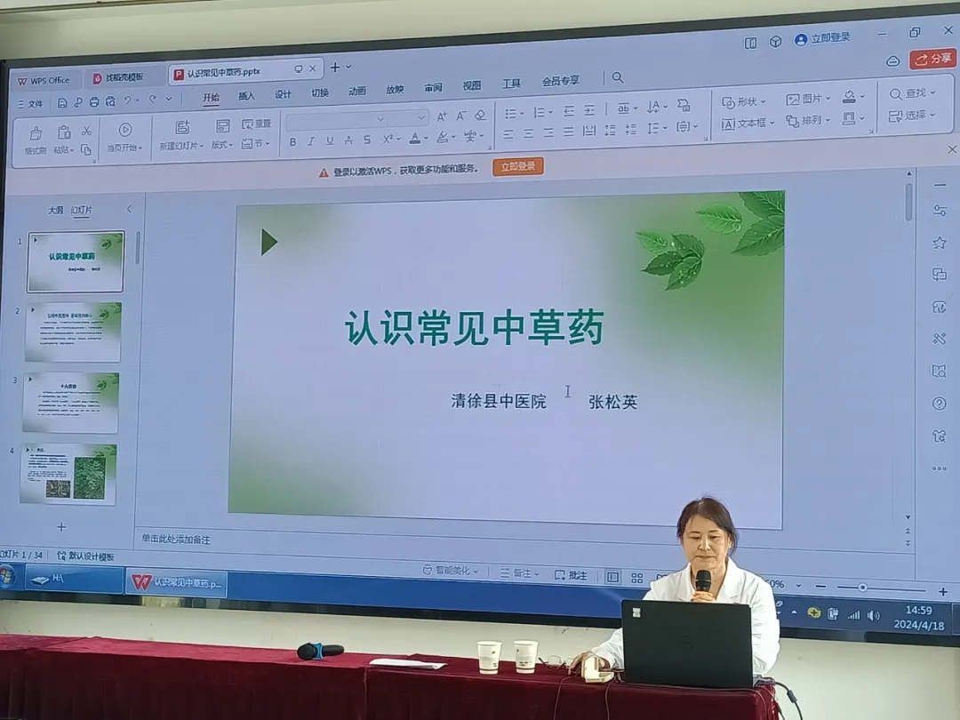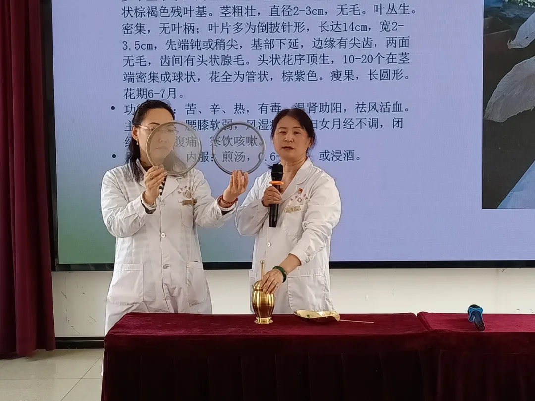 讲座上,张松英以“认识常见中草药”为题,通过PPT及常用药材、器具,向同学们普及中药知识,讲解中医药现代化发展成果,引起孩子们对中药文化的兴趣。