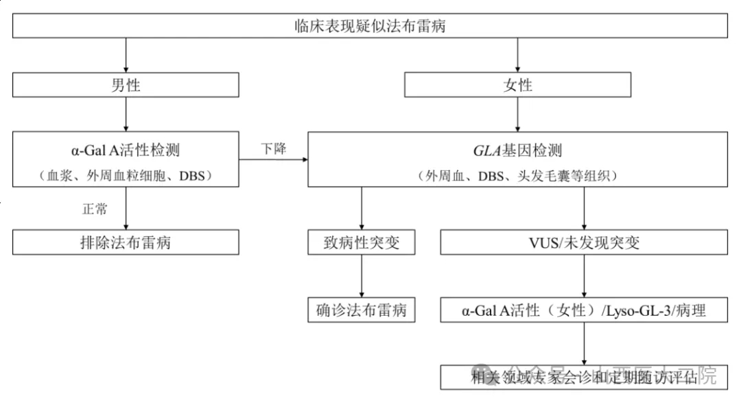 ▲中国法布雷病诊疗专家共识(2021年版)诊断流程图