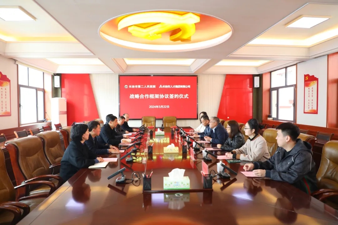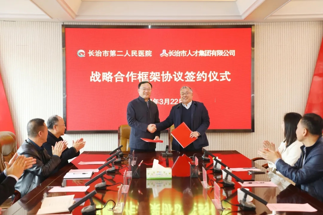 3月22日,山西省医院协会常务理事单位——长治市第二人民医院与长治市人才集团有限公司举行战略合作框架协议签约仪式。长治市第二人民医院党委书记马卫平、院长李晓东及部分党委班子成员,长治市人才集团有限公司董事长高鹏一行7人出席签约仪式。