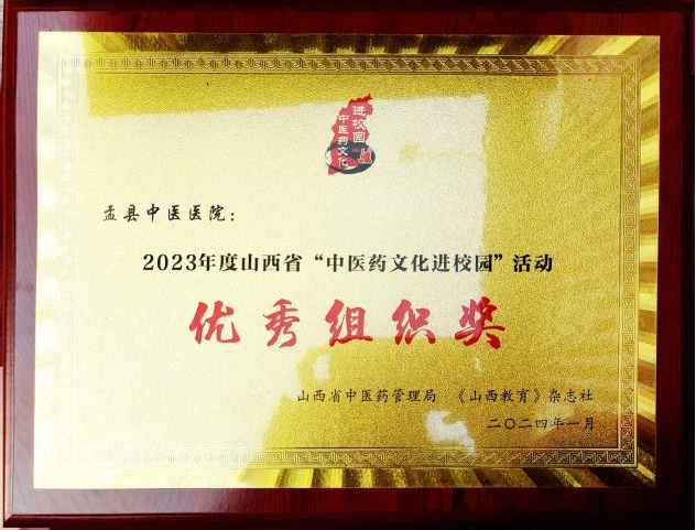 日前,由山西省中医药管理局主办、《山西教育》杂志社承办的2023年度山西省“中医药文化进校园”活动总结会在太原市召开,山西省医院协会理事单位——盂县中医医院荣获山西省“中医药文化进校园”活动“先进单位奖”与“优秀组织奖”。