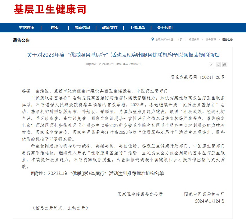 时间:2024-02-19 发布人:本站编辑 文章来源:“中华人民共和国国家卫生健康委员会”网站