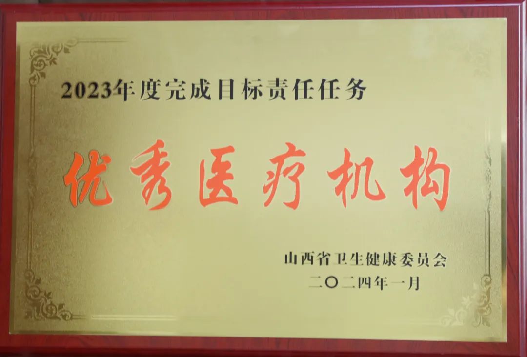 日前,山西省卫生健康委员会召开2024年度全省卫生健康工作会议,表彰2023年度目标任务测评考核的优秀医疗机构和单位。山西省医院协会副会长单位——山西省人民医院荣获“2023年度目标任务测评优秀医疗机构”称号。