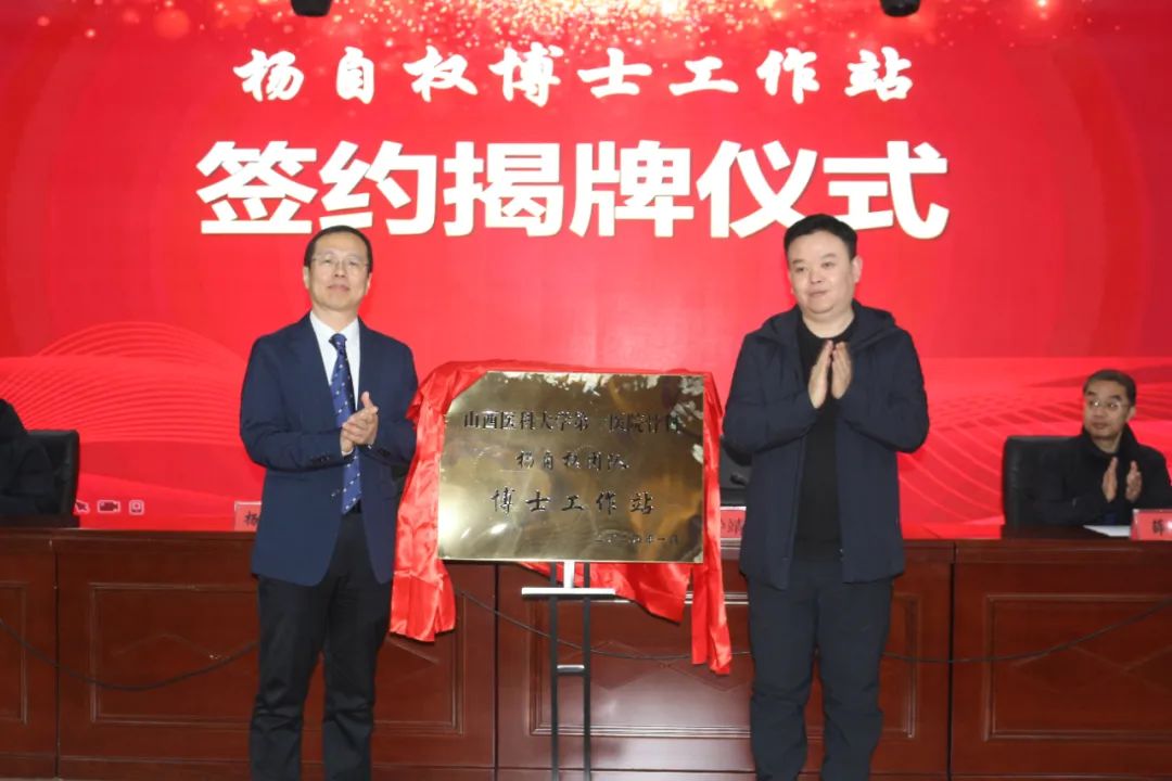 1月13日,山西省医院协会理事单位——乡宁县医疗集团人民医院举行“杨自权博士工作站”签约揭牌仪式。山西医科大学第一医院骨科主任、主任医师、教授、博士生导师杨自权,乡宁县副县长邱肸靖出席仪式。乡宁县卫体局局长张建军主持。乡宁县医疗集团党委书记、院长刘海斌致辞。