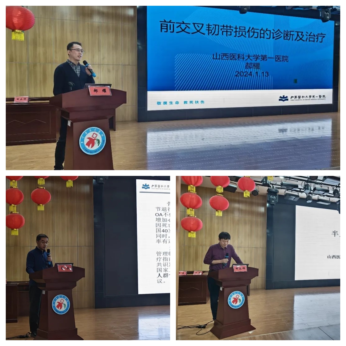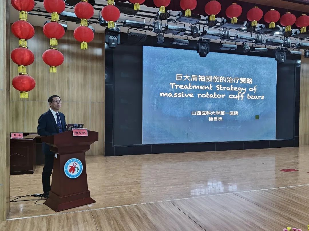 仪式后,杨自权及其团队成员在乡宁县人民医院开展了学术交流和义诊活动。其间,杨自权以《巨大肩袖损伤的治疗策略》为题作讲座;医学博士、山西医科大学第一医院骨科副主任医师郝耀讲授《前交叉韧带损伤的诊断及治疗》相关内容;山西医科大学第一医院骨科副主任医师薛英、田永祥分别讲解骨关节炎、半月板损伤有关内容。