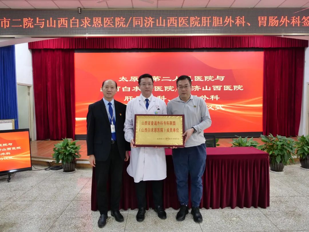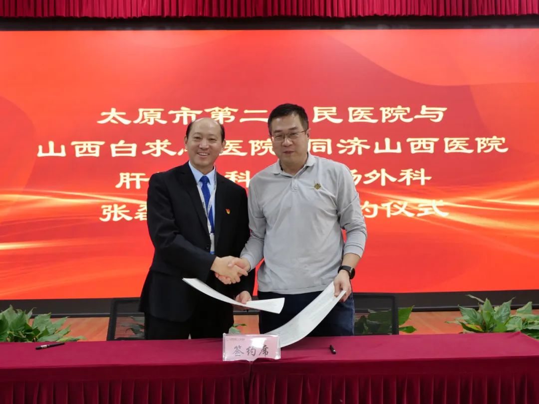 近日,山西省医院协会常务理事单位——太原市第二人民医院与山西白求恩医院 同济山西医院达成战略合作关系。山西白求恩医院普通外科主任、外科教研室主任张磊及团队将常驻太原市第二人民医院。山西白求恩医院肝胆外科主任贺杰峰、胃肠外科主任董秀山出席仪式。太原市第二人民医院党委书记董钰柱在仪式上致辞。