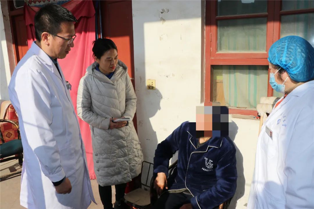 ▲调研期间,李亚峰送医入户为行动不便的双签约家庭、低保户进行诊疗。