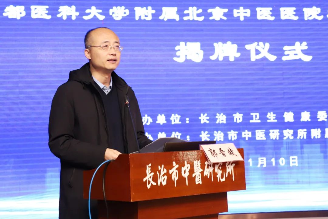 长治市中医研究所附属医院党委副书记、院长郭晋斌在致辞中表示,长治市区域中医肿瘤中心的成立是为了更好地发挥中医优势引领、带动和辐射作用,提升区域内整体中医专科诊疗能力,打造中医肿瘤预防、中医肿瘤治疗、中医肿瘤康复三位一体的新模式,引导公众树立早防、早筛、早诊、早治的肿瘤防治理念,共同开创肿瘤事业高质量发展的新局面。医院将以杜正光名医工作室落户长治为契机,在北京中医医院肿瘤专家的支持和指导下,加快中医肿瘤学科发展进程,努力打造中医药工作新亮点,推动长治市中医药事业的高质量发展。