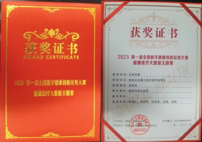 根据赛事评审流程和评审规则,国家卫生健康委员会从近千支参赛队伍中遴选271个团队晋级决赛。决赛现场,经过现场专家基于公平、公开、公正原则的严格评审,国药同煤总医院凭借着《智能化多模式围术期风险管控》项目在本次全国数字健康创新应用大赛中荣获优胜奖。