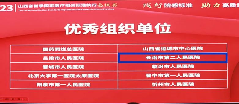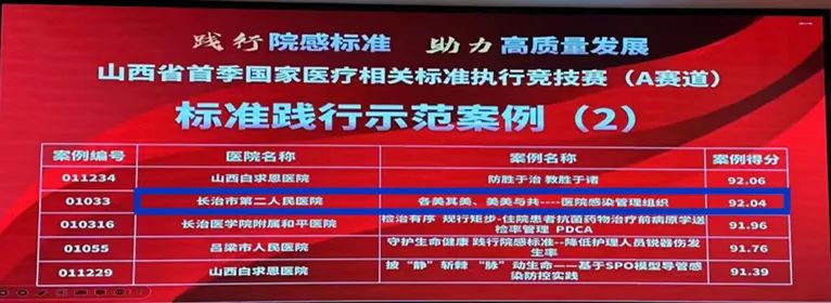近日,由山西省医疗服务评价中心组织开展的山西省首季国家医疗相关标准执行竞技赛决赛在太原举行。山西省医院协会常务理事单位——长治市第二人民医院选送的《各美其美 美美与共——医院感染组织管理》项目一路过关斩将,获得全省二等奖(示范案例)。同时,该院荣获优秀组织单位。