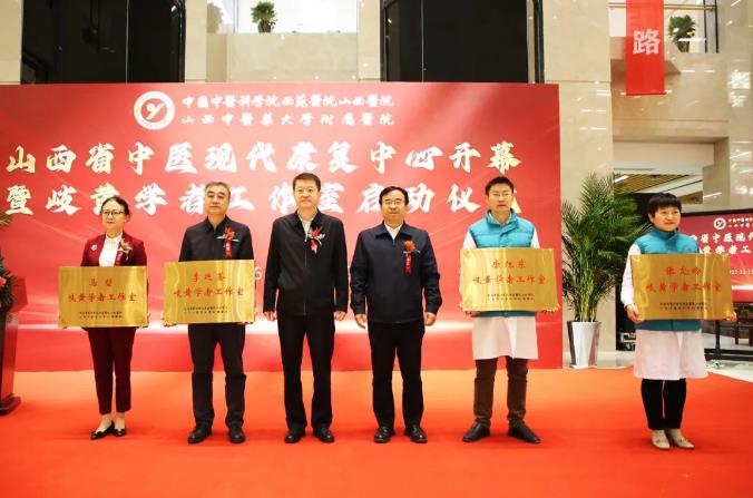 仪式上,张波、于林勇、李秋艳、马双喜、霍宏丽、郝慧琴分别为张允岭岐黄学者工作室、唐旭东岐黄学者工作室、史大卓岐黄学者工作室、徐凤芹岐黄学者工作室、马堃岐黄学者工作室、杨宇飞岐黄学者工作室、郭军岐黄学者工作室、李廷荃岐黄学者工作室进行授牌。岐黄学者马堃、李廷荃及各工作室代表上台接牌。与会领导为山西省中医现代康复中心正式启用剪彩。