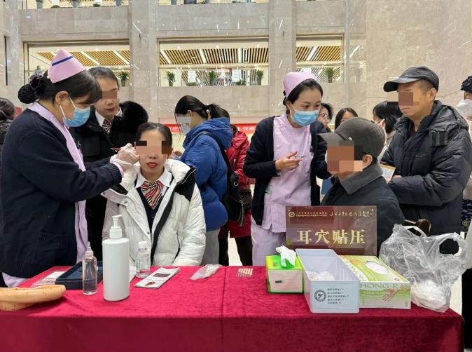 在山西省中医现代康复中心中医特色技术体验区,护理人员现场展示了火龙罐、耳穴压豆、药物罐、铜砭刮痧、温灸刮痧等中医适宜技术,患者积极参与,感受中医药的神奇魅力;中药特色产品展示区,展示了医院特色中药制剂和晋阳膏方系列产品。