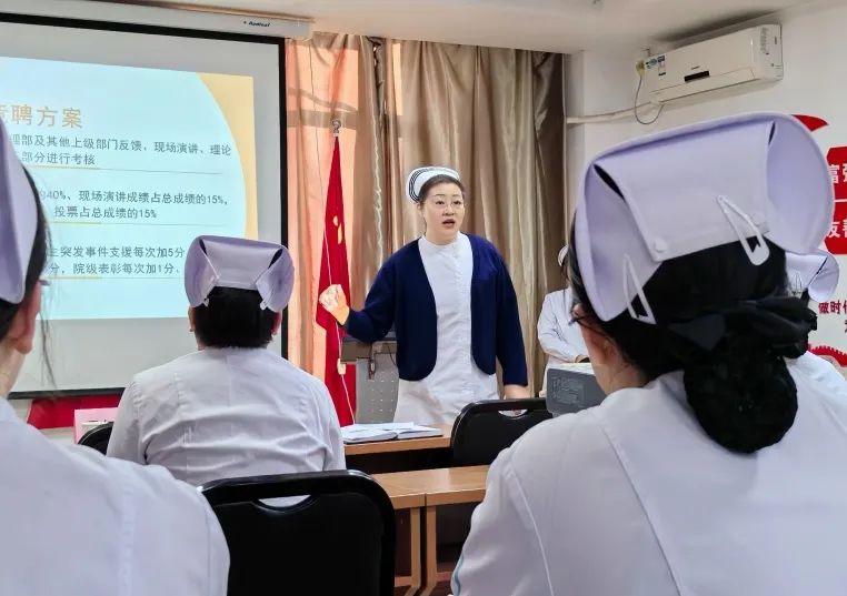 现场演讲环节展示表达能力、沟通能力、授课能力。参与竞聘的护士们从各个角度阐述了自己的竞聘优势、对责任护士岗位的认知、今后工作的展望。她们作为科室工作的佼佼者,可谓是“高手过招,神仙打架”。