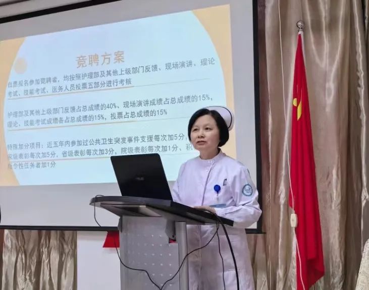 现场竞聘环节结束后,吴红霞对竞聘者现场讲过程中出现的问题进行了点评,并对本次活动进行总结,指出此次竞聘上岗不仅是在积极践行改善护理服务行动,持续提升患者就医感受,也是在推动护理人才队伍建设,为科室、为医院高质量发展贡献护理人的力量。