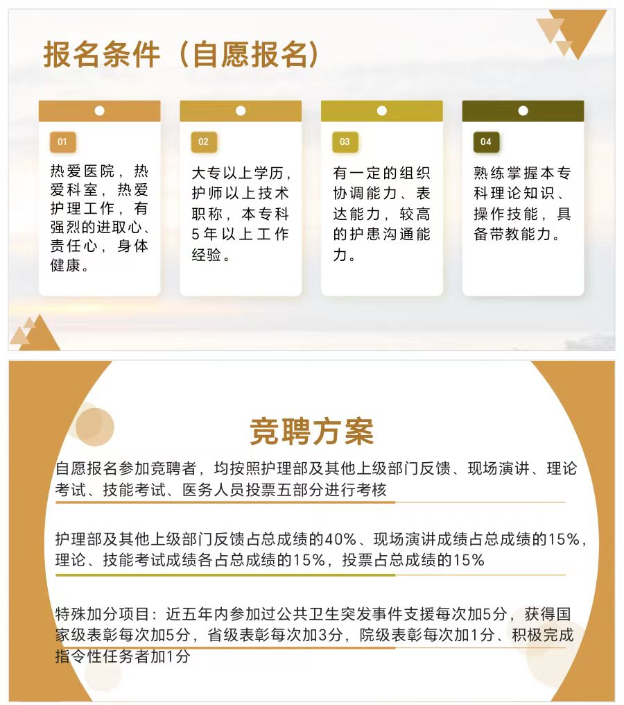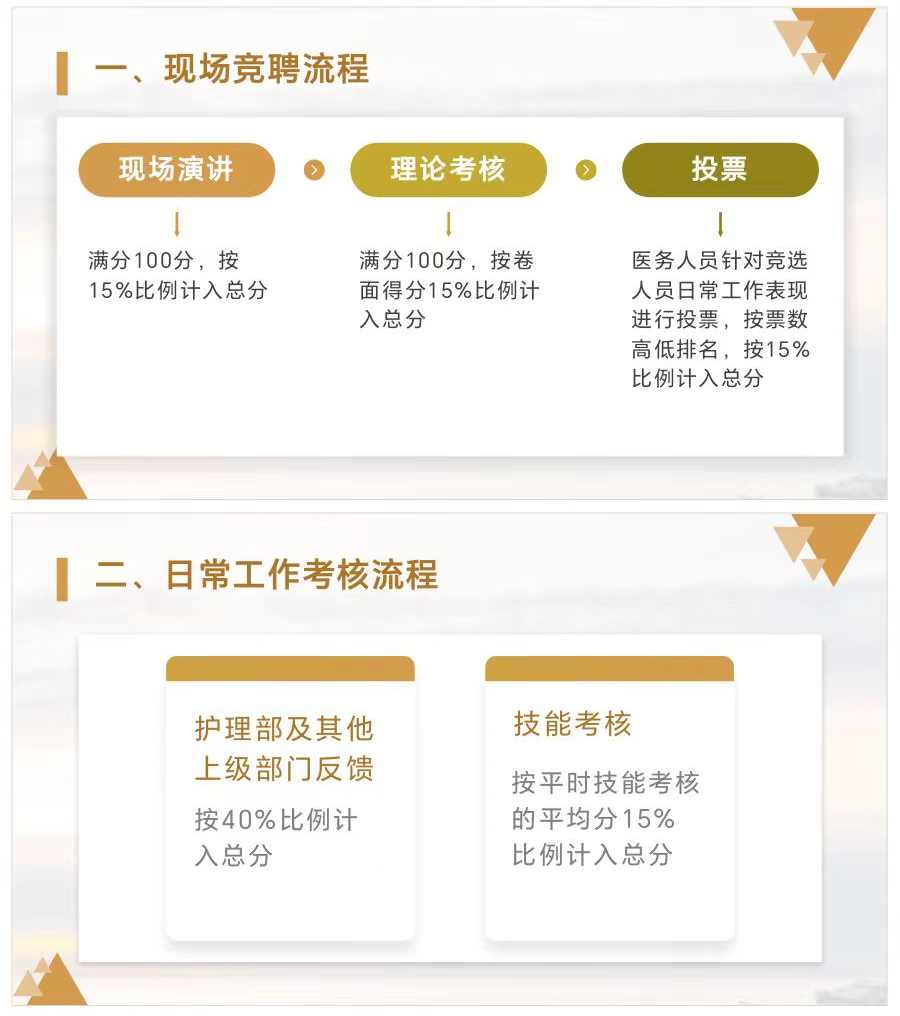 本次竞聘活动共有八位选手参与。其中,工作时间最短的8年,最长的31年。为坚守公平公正的竞选原则,吴红霞制定了严密的竞聘流程,自愿报名参加竞聘,按照现场演讲、理论考试、技能考试、医务人员投票、护理部及其他上级部门反馈五部分进行考核。