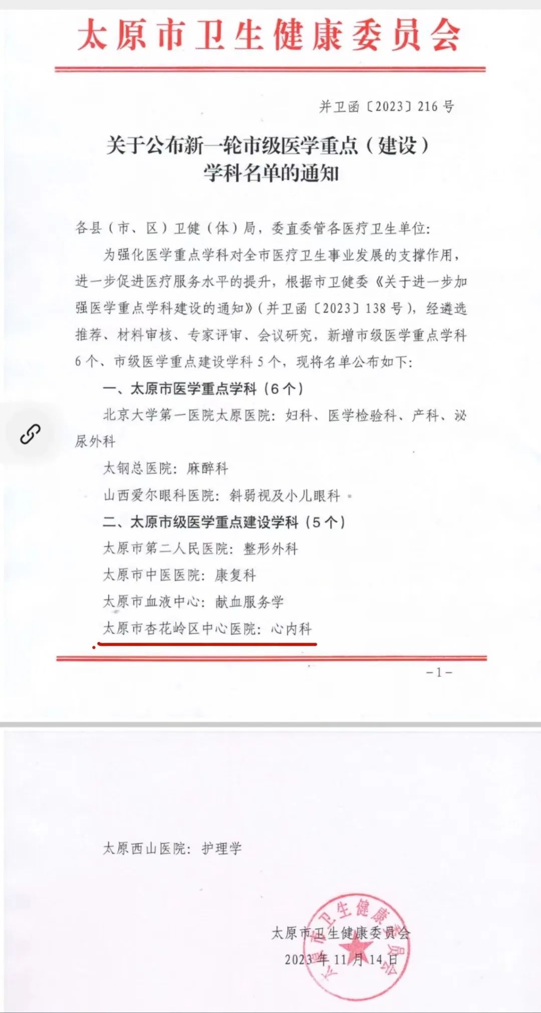 日前,太原市卫健委下发《关于公布新一轮市级医学重点(建设)学科名单的通知》,山西省医院协会常务理事单位——太原市杏花岭区中心医院心内科通过严格遴选考核,成功获批太原市级医学重点建设学科。