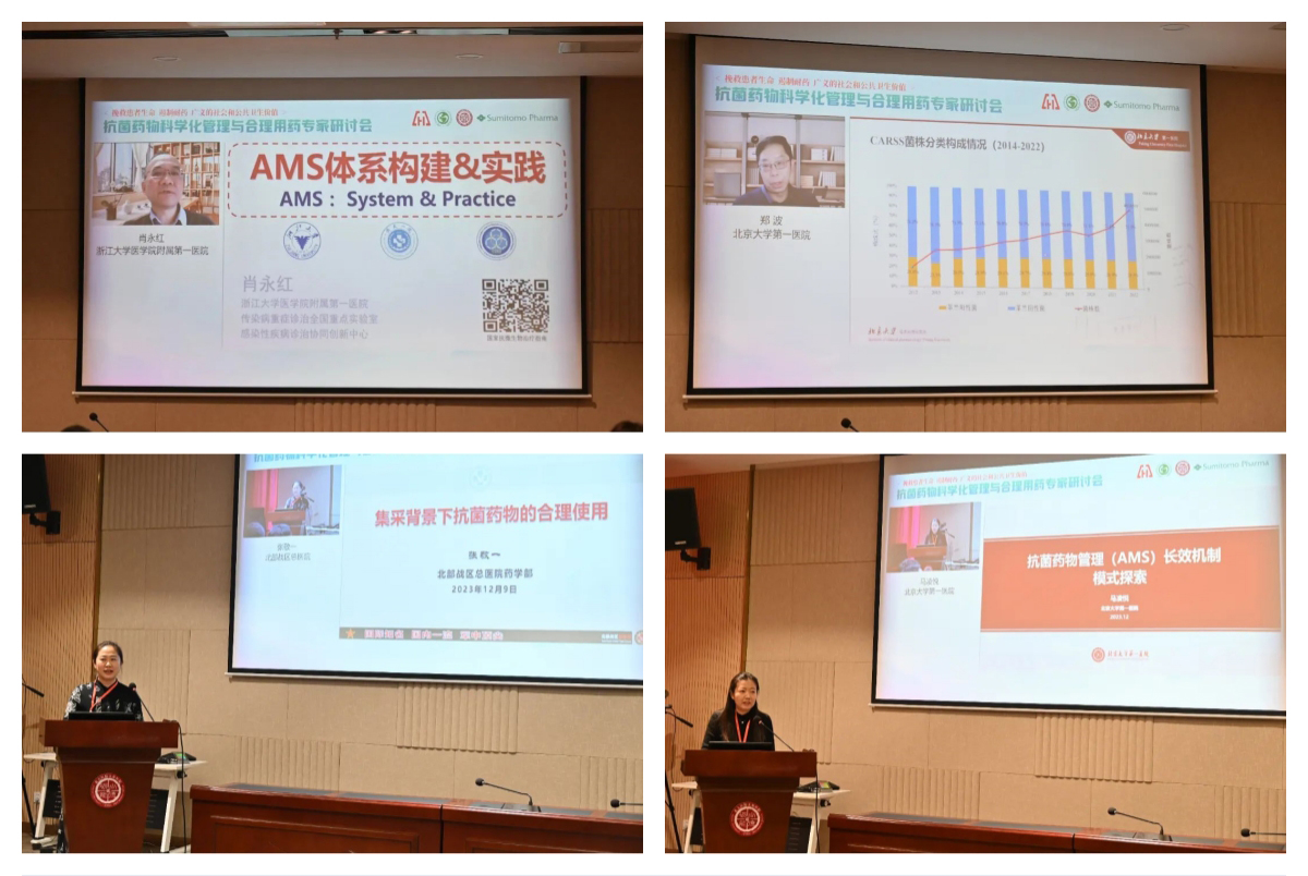 北大医院太原医院党委委员、执行院长王平致开幕词。会议邀请浙江大学医学院附属第一医院肖永红、北京大学第一医院郑波、北部战区总医院张敬一、北京大学第一医院马凌悦等抗菌领域知名专家分别以《AMS体系构建与实践》《全球耐药变迁》《集采背景下抗菌药物合理使用》《抗菌药物管理(AMS)长效机制模式探索》为主题,聚焦抗菌药物临床应用分级管理、非手术及围手术期患者抗菌药物的预防性应用等合理用药的热点话题,展开了深入浅出的讲解。