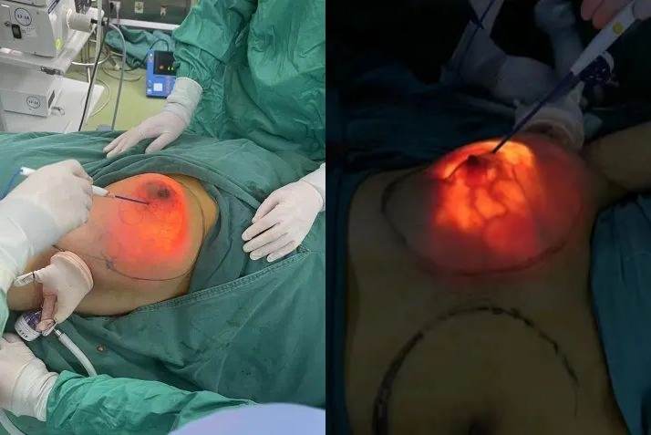 患者,女,37岁,因发现右乳肿物来到山西白求恩医院乳腺外科就诊。入院后经穿刺活检后证实为乳腺癌,需进行手术治疗。患者重建乳房意愿强烈。为了让患者在手术后拥有更好的生活质量,科主任高晋南带领乳腺外科手术团队经过充分的讨论,全面评估患者具体情况后,为其制定了个体化手术方案——腔镜下乳腺癌根治术+I期假体乳房重建术。