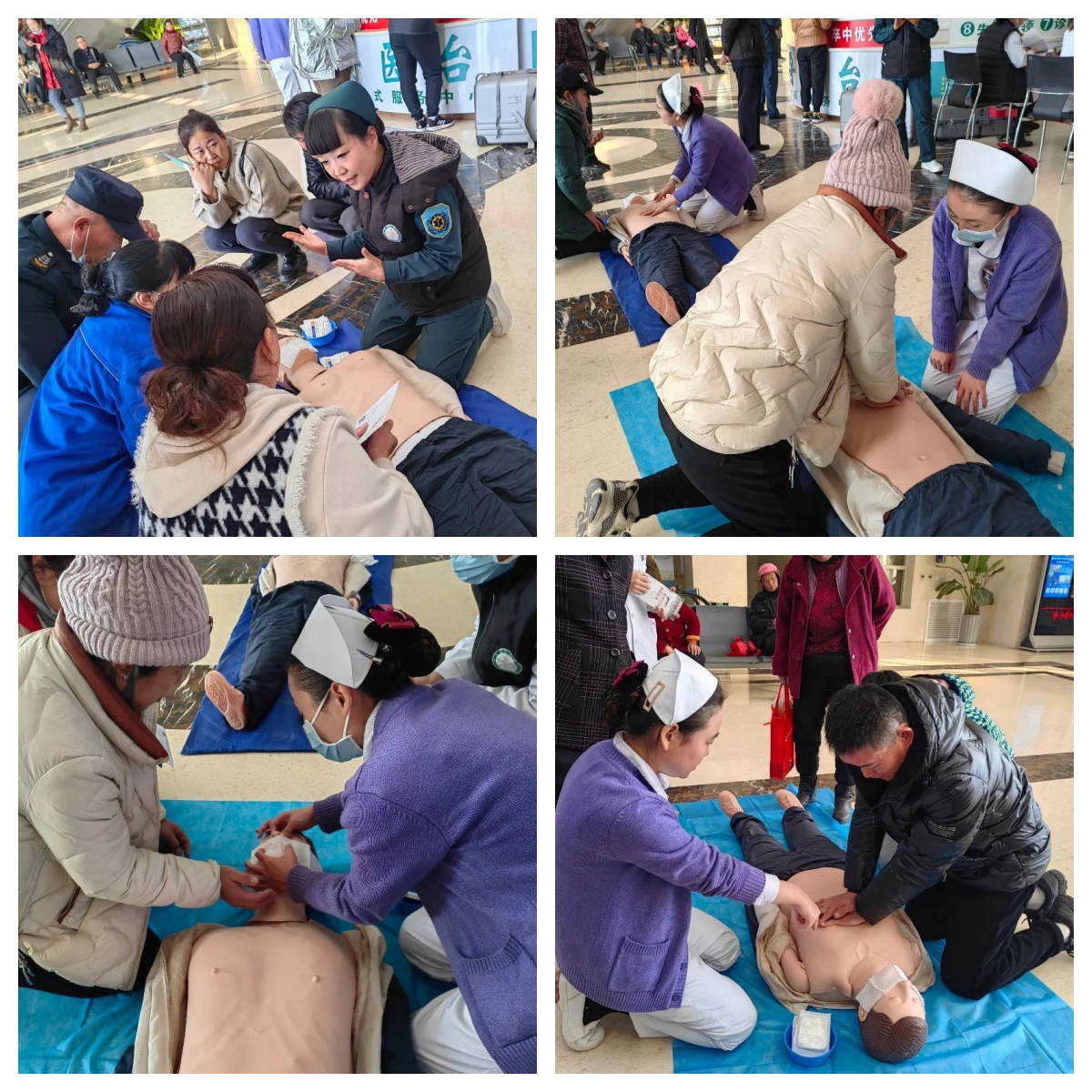 此外,急诊科及心血管内科护理人员进行心肺复苏操作培训,详细讲解心肺复苏的操作流程、用模拟人进行演示,并鼓励前来观摩的群众进行实操训练,让大家对心肺复苏全过程有了更直观的了解,掌握了心肺复苏技能。