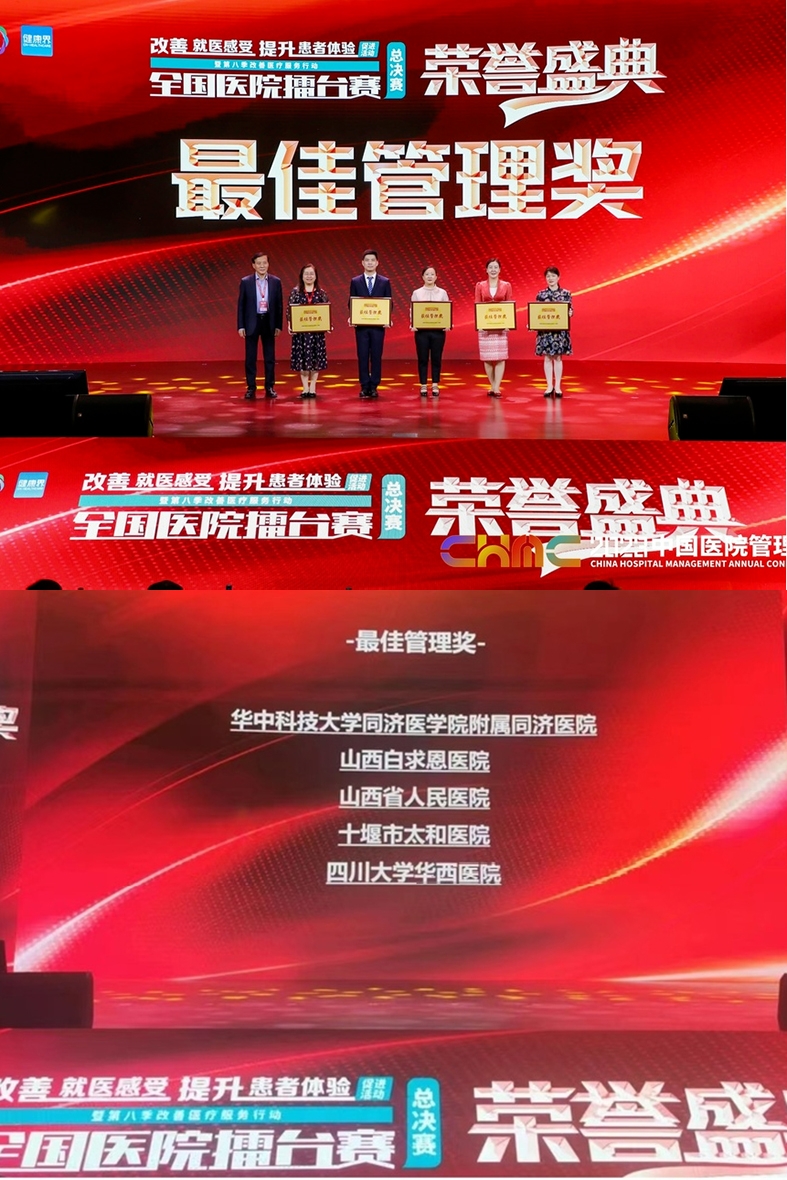 11月10日,由国家卫生健康委医政司指导、健康界主办的第八季改善医疗服务行动全国医院擂台赛总决赛在海南省海口市成功举办。山西省医院协会副会长单位——山西白求恩医院 同济山西医院荣获“最佳管理奖”,该院护理部推送的六个案例在华北赛区决赛中全部成功晋级,并在全国总决赛中荣获银奖一项、铜奖一项、“卓越案例奖”四项及“热力值十强案例”三项的好成绩。同期举办的第七季中国医院管理奖颁奖典礼上,该院荣膺“管理贡献奖”一项、铜奖一项及“全国优秀奖”一项。