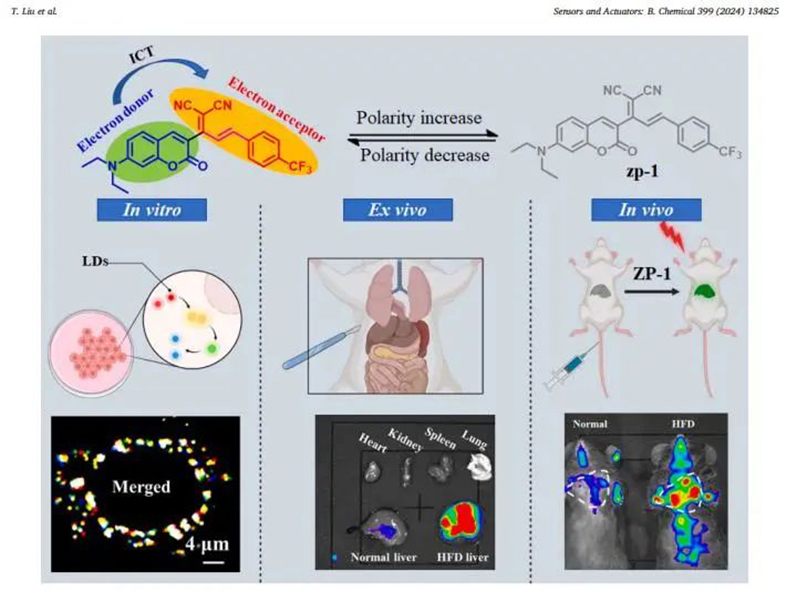 近日,山西省医院协会副会长单位——中国医学科学院肿瘤医院山西医院(山西省肿瘤医院)肝胆胰胃外科刘挺科研团队在国际顶级期刊《Sensors and Actuators: B. Chemical》上发表题为“Harnessing Polarity-Dependent Fluorescent Probe for Lipid Droplet Metabolism Dissection and in vivo Nonalcoholic Fatty Liver Disease Diagnosis ”的研究论文。刘挺和该院乳腺外科陈婧为论文第一作者。