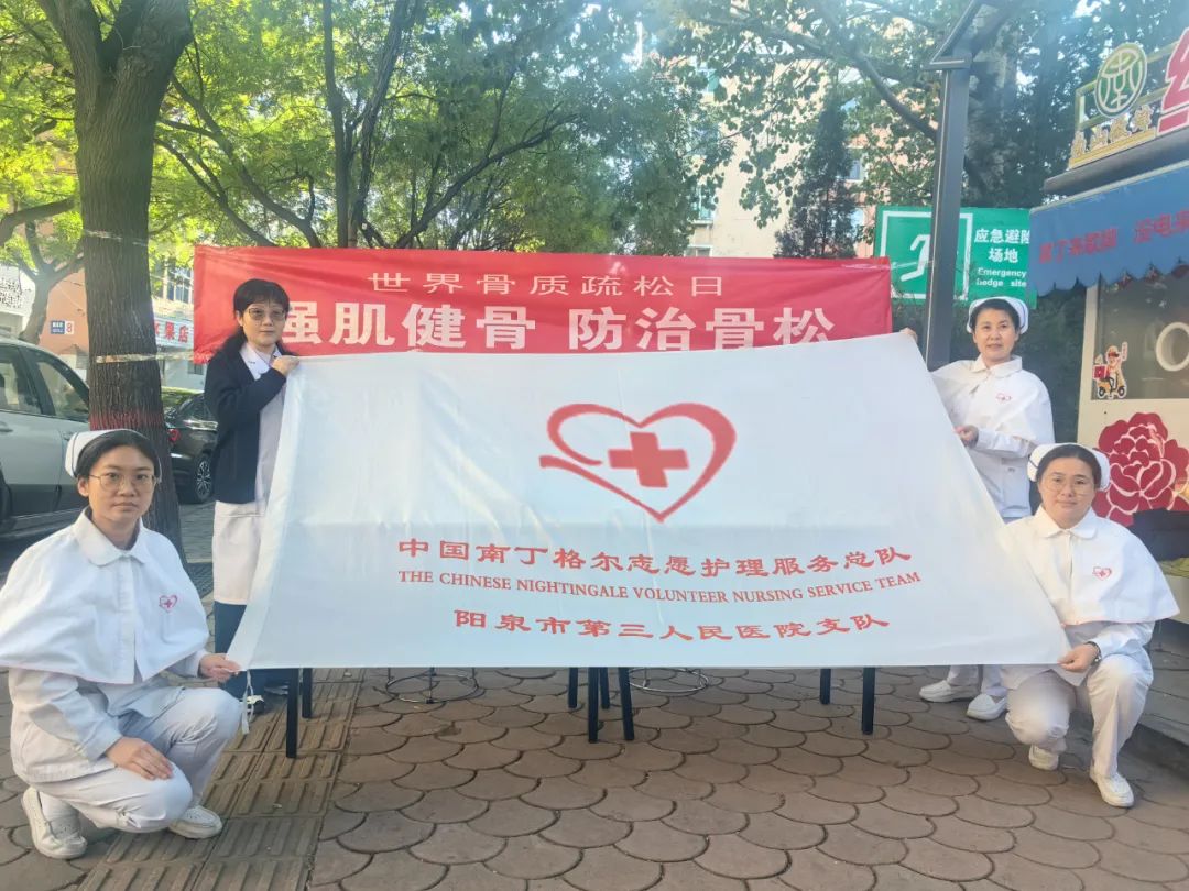 10月20日,第27个世界骨质疏松日,山西省医院协会常务理事单位——阳泉市第三人民医院内分泌科医护人员走进城区牡丹园举行宣传义诊活动。