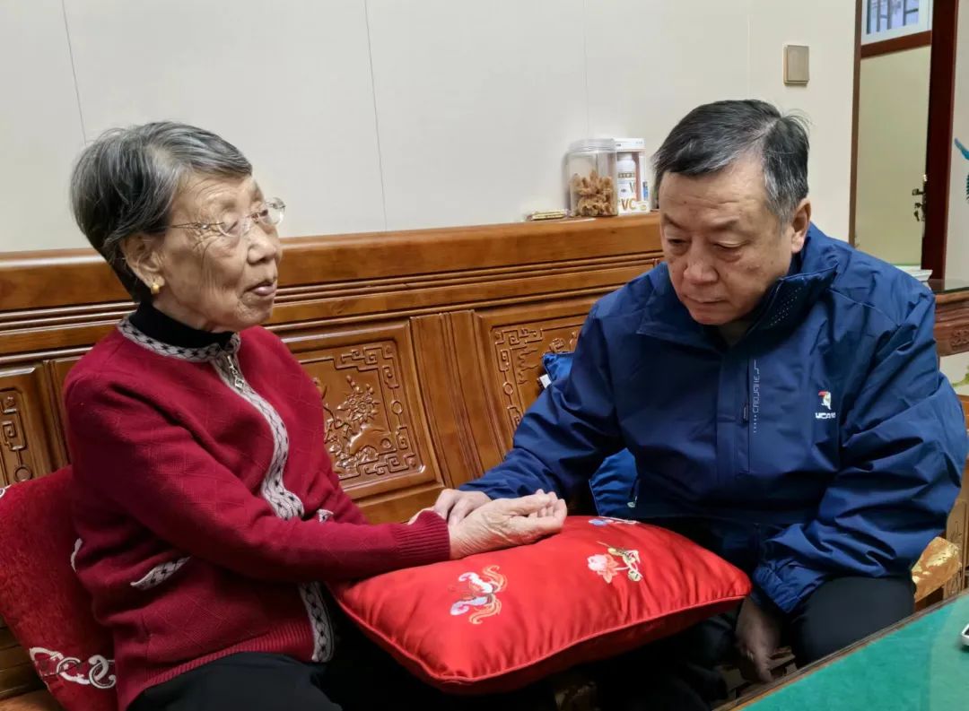在太安村,芮城县卫健体局党组书记、局长薛丽、县中医院党支部书记、院长李小进等走访慰问全国道德模范、百岁老人孙银聪,为老人送上重阳节百岁寿星“九重大礼包”,包括建立中医健康档案、门诊诊疗免费卡、中医专家一对一服务、免费接送等。孙银聪老人今年100岁,思路清晰、身体硬朗,与儿子共同居住生活,孝老敬亲、家庭和睦的良好家风感染着社区邻里。