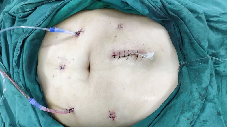 普外一科医护团队接诊后,完善相关检查并进行术前讨论,与家属商定后,制定出详细的手术计划及术前准备。9月15日,患者在全麻下行腹腔镜下右半结肠切除术。术中,医生按照结肠癌手术范围切除病灶,中间入路回结肠动静脉、右结肠动静脉、结肠中动脉右支都做了根部结扎,回结肠吻合。经过四个半小时的努力,手术顺利完成。整个手术过程几乎无出血,根治彻底。