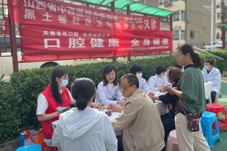 9月20日是第35个“全国爱牙日”,今年活动主题为“口腔健康 全身健康”。当天上午,山西省医院协会副会长单位——山西省中西医结合医院口腔科、第二病区内科、黑土巷社区卫生服务中心联合在五龙口三社区举行以“口腔健康 全身健康”“关爱老年口腔 乐享健康生活”“全民健康生活方式行动”为主题的义诊活动,呼吁人们重视口腔健康,增强口腔疾病认识。