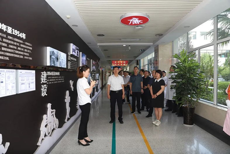 在河津市人民医院,杨占英一行先后来到门诊大厅、介入科等科室进行实地参观,并兴致勃勃地参观了院史墙,详细了解医院发展历史。