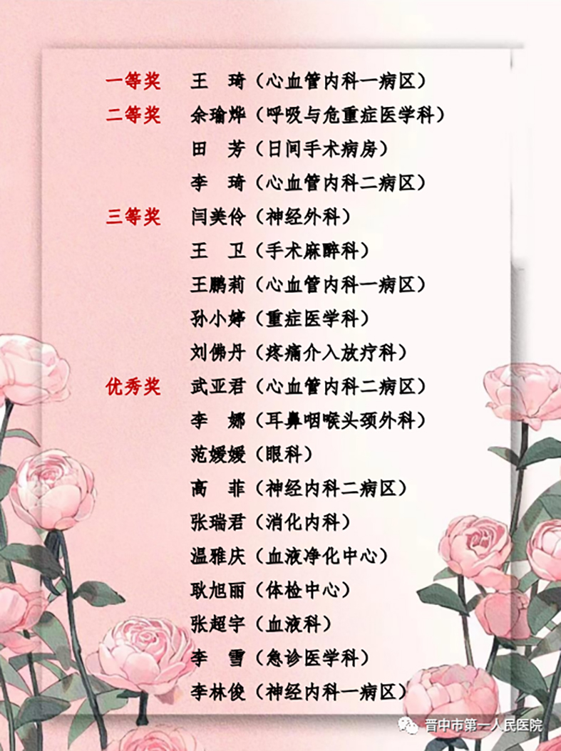 来自全院40个科室的43名N2级选手报名参赛,经过激烈角逐19名选手进入决赛。