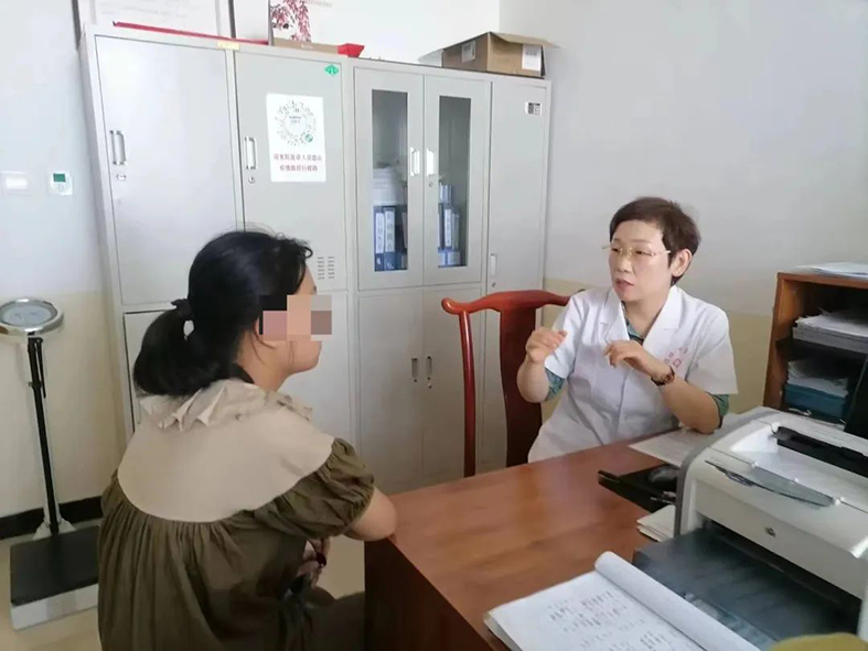 ▲在妇产科门诊,妇科专家辛辉副主任医师正在向一位异常子宫出血患者讲解注意事项,并向患者耐心的讲解肥胖对异常子宫出血的影响,叮嘱患者注意调整饮食结构、穴位埋线控制体重。