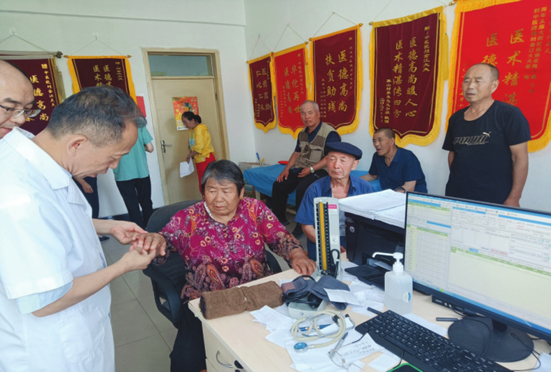 ▲灵丘县中医院医生刘金江在给患者问诊。