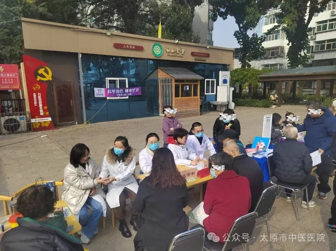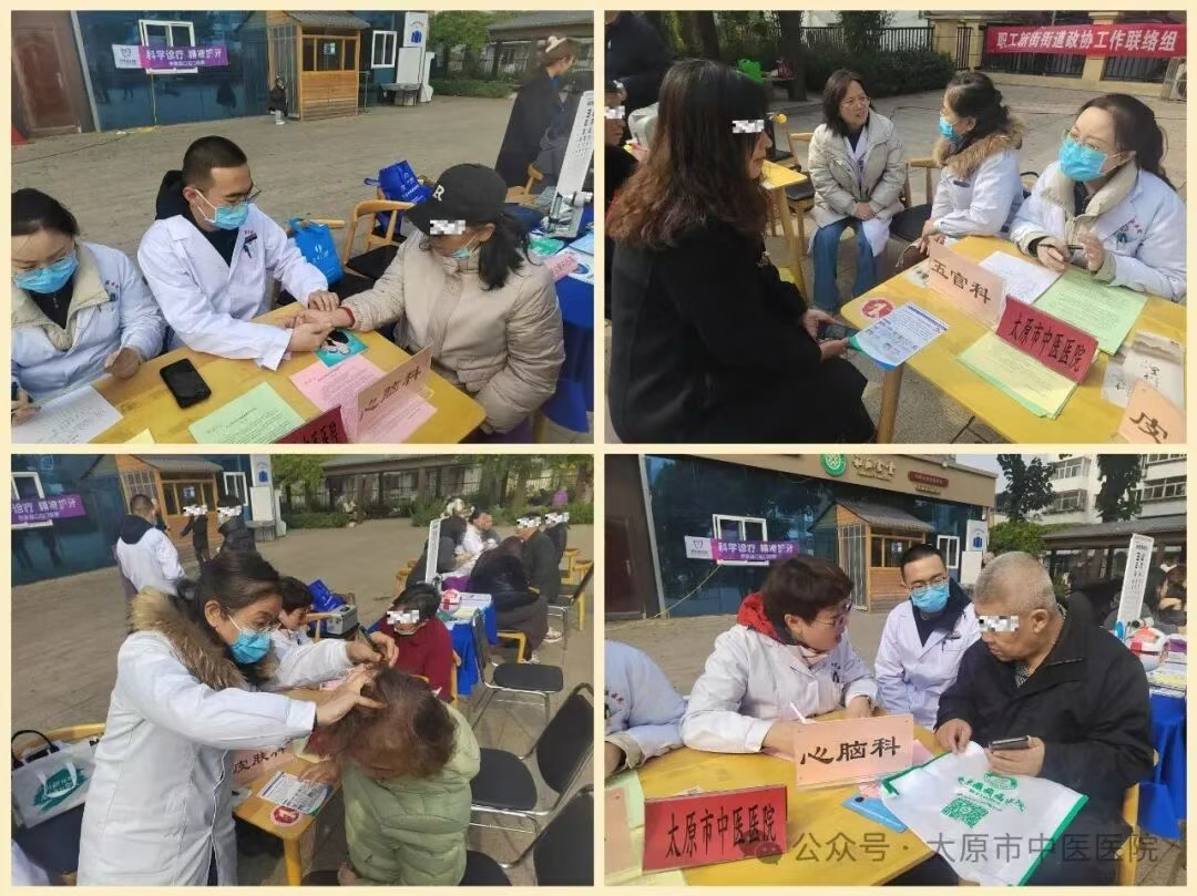 为提升老年群体健康素养水平,推广健康生活方式,10月25日上午,在民进太原市委会的组织下,民进太原市中医医院支部、中共太原市中医医院委员会医疗第二党支部、民进太原市委会所属其他各医卫支部,在杏花岭区铁路迎春小区A区小广场开展“九九重阳 健康咨询”活动。本次活动由赛马场社区卫生服务站主办,杏花岭区职工新街街道政协工作联络组协办,共同为辖区居民提供了专业健康咨询和贴心服务。活动中,来自山西省医院协会常务理事单位——太原市中医医院的专家团队为社区居民提供了心脑科、皮肤科、眼耳鼻喉科等3个科室的服务。