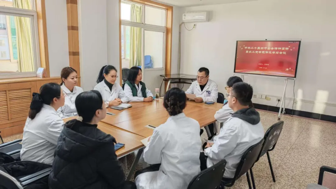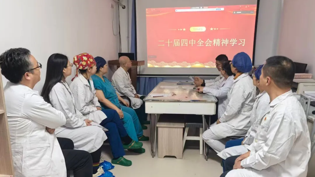 支部联动,筑牢基层学习阵地。各基层党支部将学习贯彻落实全会精神作为当前首要的政治任务,依托“三会一课”、主题党日等载体,通过集中学习、专题研讨等形式,组织党员干部原原本本学、联系实际学。在职党员利用早会间隙开展“微学习”,离退休党员通过线上平台开展自学,确保学习覆盖到每一名党员干部。同时,各支部注重学用结合,将全会精神与科室医疗服务、学科建设、患者满意度提升等重点工作相结合,推动了学习成果转化为解决实际问题的能力大提升。