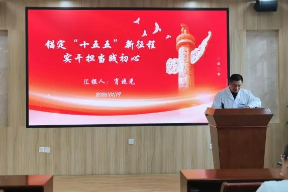 1月19日,山西省医院协会副会长单位——山西白求恩医院肿瘤中心第二党支部组织召开主题党会,围绕“锚定‘十五五’新征程,实干担当践初心”主题,开展了内容扎实、思想深刻的政治学习与业务研讨,有效统一了思想、凝聚了共识,为支部新一年工作奠定了坚实的思想政治基础。党支部书记郭亚荣主持会议,肿瘤中心主任肖晓光作主题汇报,支部全体党员参会。