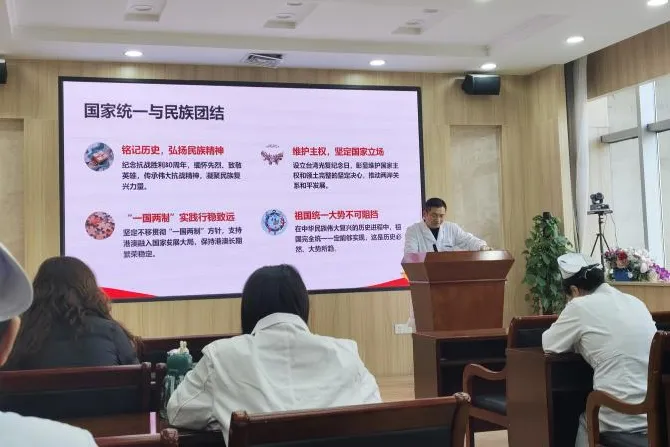肖晓光带领全体党员学习习近平主席二〇二六年新年贺词。他强调,贺词中关于祖国统一、“一国两制”、弘扬民族精神的内容凝聚复兴力量,要求党员紧扣“高质量发展”首要任务,将国家战略与医疗健康事业结合,找准工作切入点。