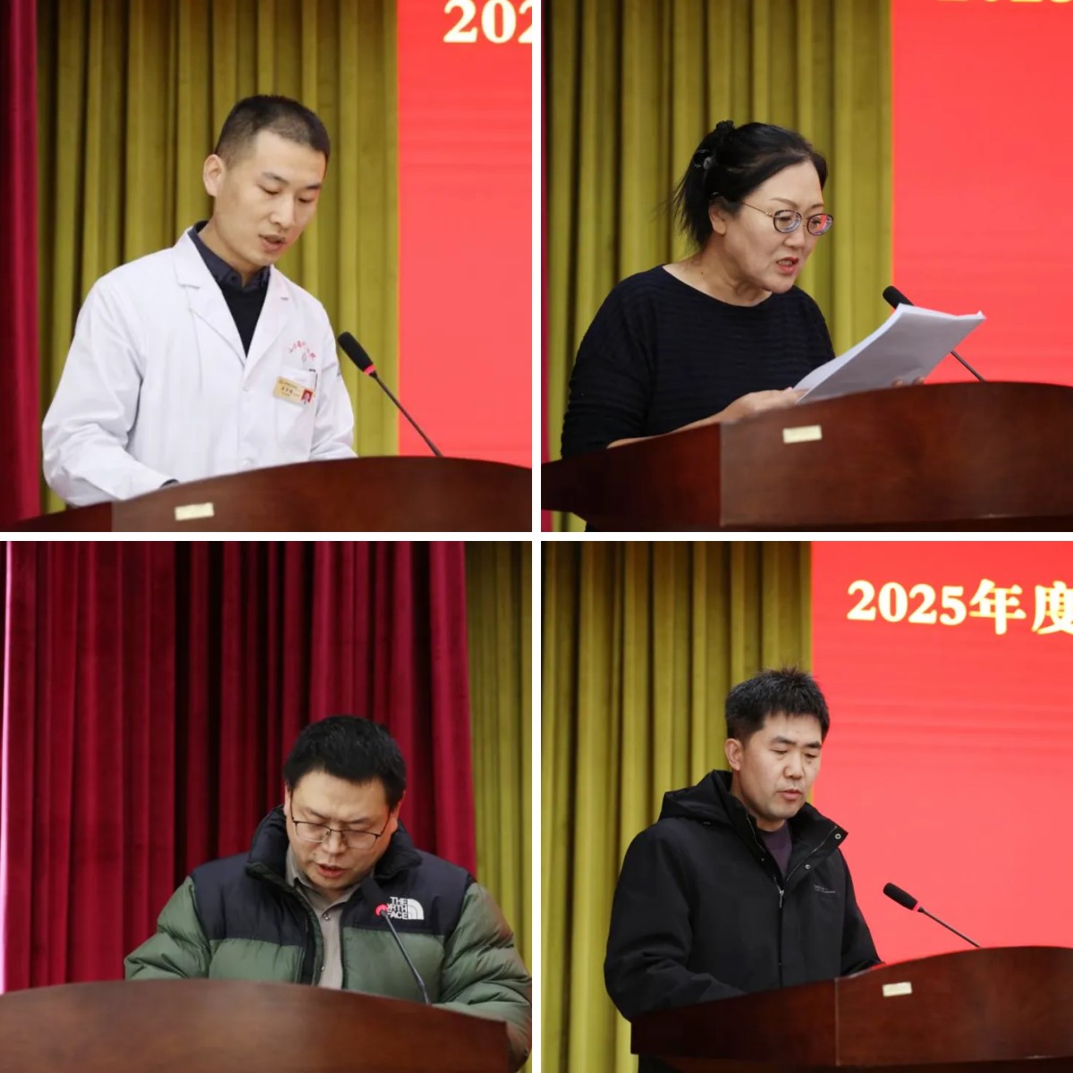 刘照峰在总结讲话中通报了医院2025年的跨越式发展成果,感谢全院干部职工的辛勤付出,并对2026年度工作提出要求:一是强化政治引领,夯实组织基础,推进党支部标准化规范化建设,打造中医药特色党建品牌,推动党建与业务同谋划、同部署、同考核;二是提升医疗质量,筑牢安全防线,深化对外合作,拓展诊疗服务范围,严格落实医疗核心制度,全面提升服务水平;三是加强科技创新,优化人才梯队,依托重点实验室与协同创新平台攻坚核心技术,完善“青苗人才”培养计划,拓宽引才渠道,确保各项工作落地见效。