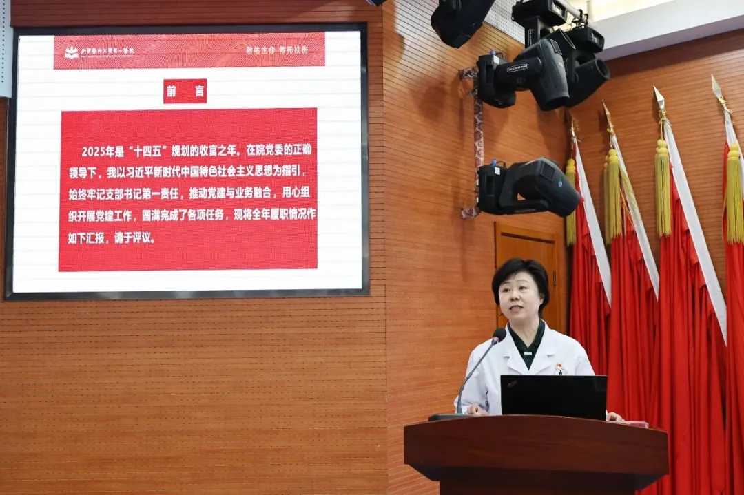 为总结2025年度基层党建成效,明确2026年工作方向,推动医院基层党建从“规范化”向“高质量”跨越,1月26日,山西省医院协会副会长单位——山西医科大学第一医院召开2025年度党支部书记抓基层党建工作述职评议会。院领导班子成员、各党支部书记及支部委员、党务部门负责人、民主党派代表与群众代表参加会议。医院党委书记徐钧点评并讲话,院党委副书记吴旭东主持。