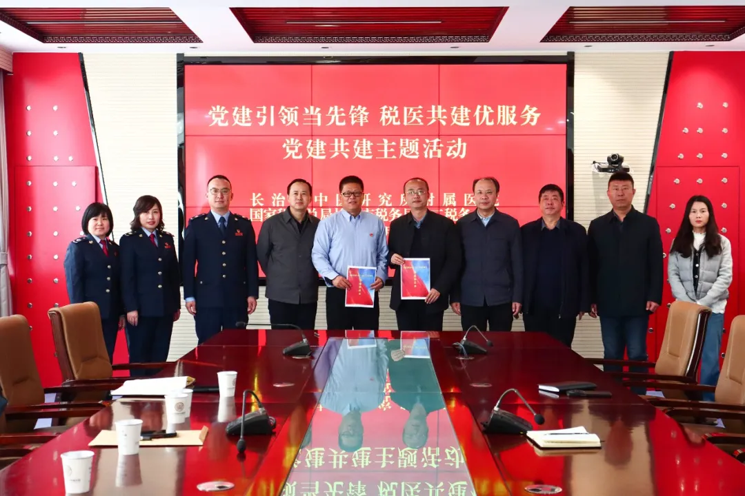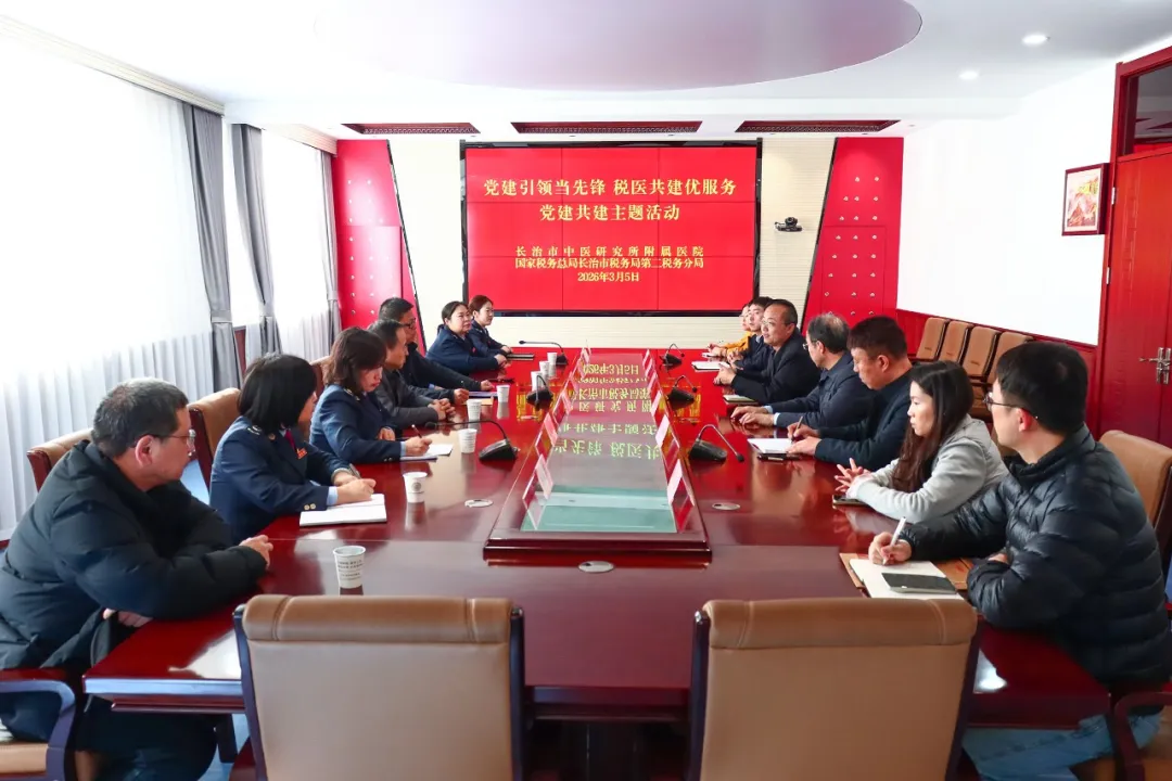 3月5日,山西省医院协会常务理事单位——长治市中医研究所附属医院与国家税务总局长治市税务局第二税务分局联合举办“党建引领当先锋 税医共建优服务”党建共建主题活动,共商党建合作、共促业务融合,以党建联建推动税医服务提质增效。长治市中医研究所附属医院党委书记、院长郭晋斌,国家税务总局长治市税务局第二税务分局副局长陈浩鸿出席活动。