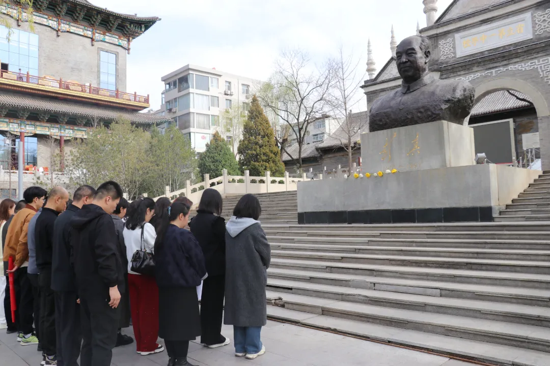 在彭真纪念馆的彭真同志铜像前、双塔革命烈士陵园的革命烈士纪念碑旁、牛驼寨革命烈士陵园的太原解放纪念碑下,全体人员整齐列队,奏唱国歌,向革命先辈鞠躬默哀,依次敬献菊花,轻拭烈士墓碑,以朴素而庄重的方式表达对英烈的深切缅怀与崇高敬意。在双塔和牛驼寨革命烈士陵园,党员们重温入党誓词,铿锵有力的誓言既是继承先烈遗志的庄严承诺,更是砥砺前行的奋斗号角。