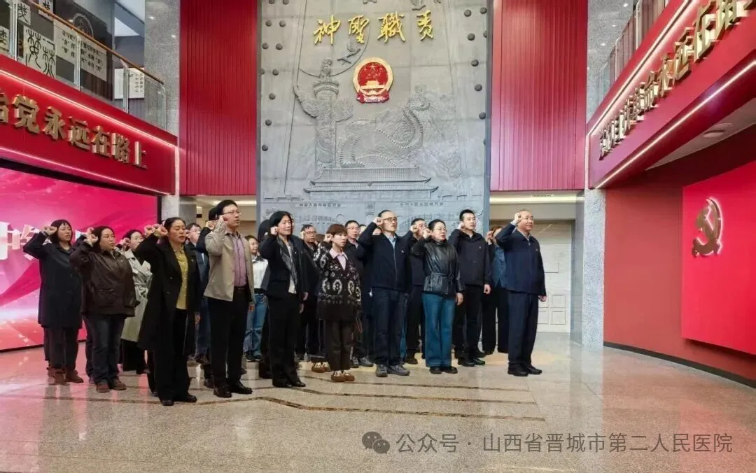 在参观结束之际,全体党员干部整齐列队,面对鲜红的党旗,重温入党誓词。铿锵有力的誓言在展厅内回荡,既是对入党初心的再次叩问,也是对廉洁自律的郑重承诺,更是对坚守医者初心、勇担健康使命的坚定践行。