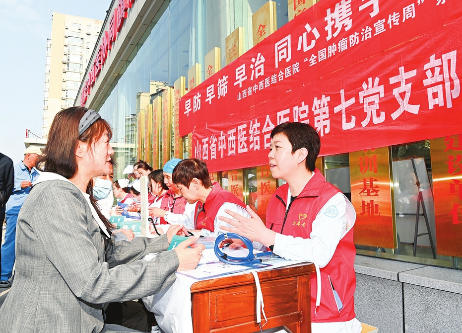 4月15日,全国肿瘤防治宣传周来临之际,山西省医院协会副会长单位——山西省中西医结合医院开展“科普—筛查—关怀”联动活动。活动现场开设大型义诊专区,专家现场答疑、普及防癌知识,用暖心服务守护群众健康。(王瑞瑞)
